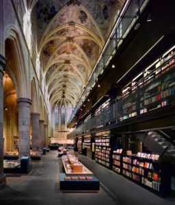 Comment ne pas être ébahi devant tant de beauté ? Transformer des anciens lieux culturels, religieux, sportifs, en librairie ou bibliothèque, je trouve l’idée fabuleuse ! J’ai eu la chance de voir le sublime théâtre El ateneo de Buenos Aires l’an dernier, devenu librairie. Cette église hollandaise a l’air tout aussi magique.