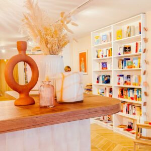 Ouvert depuis juin dernier, cette librairie – salon de thé a tout pour plaire ! Un accueil aux petits oignons par le duo mère / fille Dorothée et Valentine ; des pâtisseries locales et gourmandes et du thé de qualité ; un rayon librairie orienté bien-être ; et des ateliers créatifs toute l’année. J’y anime d’ailleurs mes goûters littéraires et des ateliers de bibliothérapie. Je ne pouvais rêver meilleur endroit pour vous accueillir !
