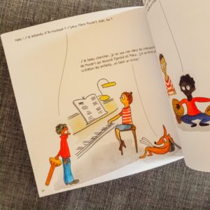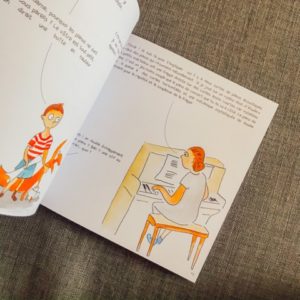 J’veux « faire » Mozart allie textes courts et illustrations, il est ludique et pédagogique à la fois. Le trait de dessin d’Isabelle apporte une réelle touche de qualité à ce livre jeunesse. Léna Stéphan les a ensuite mis en couleur.