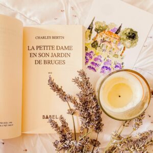 L’illustration sur la couverture* m’interpelle dans le rayon francophone d’une petite librairie de Bruges. L’auteur et le titre me sont inconnus mais je décide de faire confiance en mon instinct. J’embarqueLa Petite Dame en son jardin de Brugesde Charles Bertin (éditions Actes Sud, 1996) pour lire sur le retour de ce séjour belge.