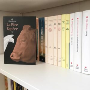 La pire espèce nous plonge dans le monde agricole, où Nathalie, personnage principal du roman, abat les bovins. Entre abattoirs, boucheries, concours de vaches, l’auteur nous dépeint un monde rural sur fonds d’attentats et de conflits politiques.