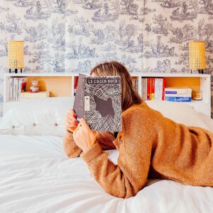 Devant participer à un club de lecture sur la thématique du conte, j’allais rendre visite à ma librairie pour demander conseil. J’associais ce genre aux lectures pour enfants, ou à la mythologie, et quelque chose de très éloigné de ce que j’aime en littérature. Suivant mes consignes, ma libraire a dégainé un exemplaire du Chien noir de Lucie Baratte, très enthousiaste à l’idée de pouvoir me parler de son dernier coup de cœur ! En l’écoutant argumenter, j’étais de suite plus emballée par le thème imposé de mon futur bookclub… Le chien noir est paru en 2020 aux éditions du Typhon. Il s’agit du premier roman de l’autrice.