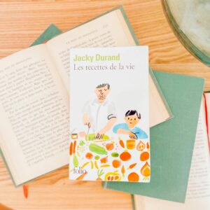 J’ai une histoire particulière avec ce livre. J’ai offert Les recettes de la vie à ma meilleure amie, sans jamais l’avoir lu, et en étant convaincue, pourtant, qu’elle tenait là entre ses mains une pépite littéraire. Étaient restés en mémoire je crois, les mots fabuleux de l’éditeur, à l’occasion de la parution du roman de Jacky Durand. J’avais ajouté, depuis tout ce temps, l’ouvrage à ma wishlist, tellement enthousiaste à l’idée de connaître un nouveau coup de cœur. Récemment, à l’occasion de mon club de lecture autour de la nourriture, je retombais sur le livre lors d’un après-midi de bénévolat à la librairie solidaire.