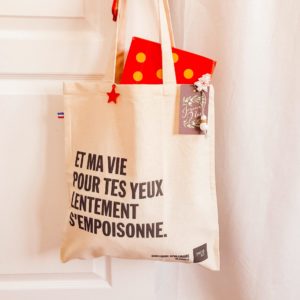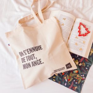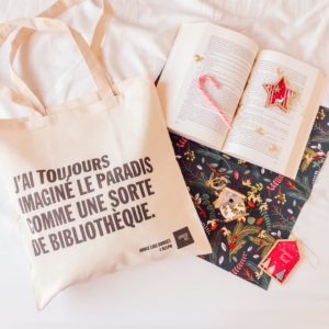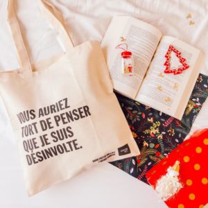 Le tote bag fait partie de ma vie courante depuis des années maintenant. J’en ai toujours un dans mon sac à main lorsque je pars faire des achats. Et c’est l’accessoire indispensable aussi en tant que lectrice. J’y glisse mon livre si je dois prendre les transports en commun.