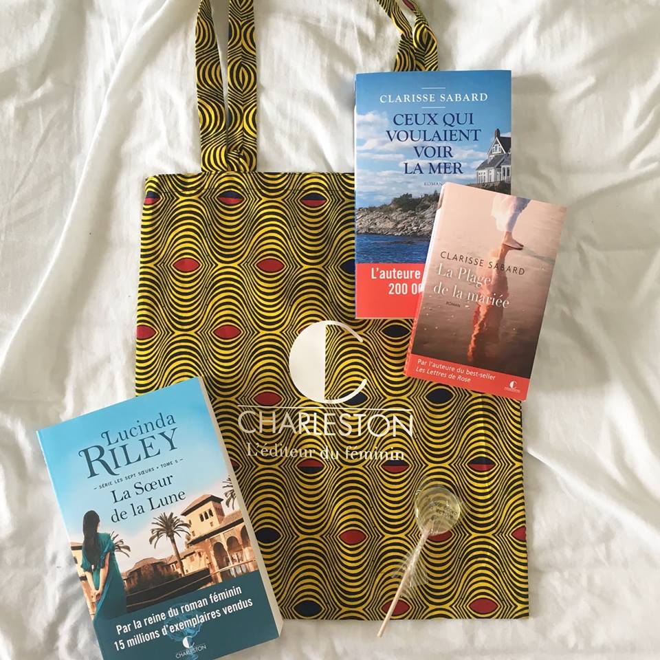Je suis repartie la tête pleine d’informations, et les bras chargés de cadeaux 🙂 J’ai eu le droit à un magnifique tote-bag, au dernier roman de Lucinda Riley, La soeur de la lune, du dernier Clarisse Sabard, Ceux qui voulaient voir la mer et du format poche de La plage de la mariée.