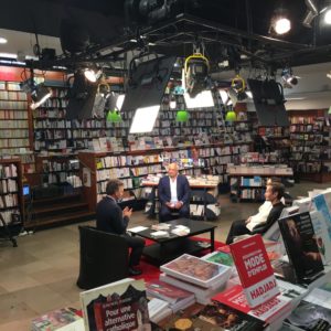 Mais les plateaux ne m’étaient pas totalement inconnus. En 2017, la librairie parisienne La Procure m’avait conviée à un moment privilégié. Assister aux coulisses d’une émission TV dans leurs locaux, avec en invité d’honneur Eric-Emmanuel Schmitt ! J’ai pu enfin rencontrer mon auteur chouchou, celui grâce à qui je suis ici aujourd’hui. Si je n’ai pu échanger que quelques mots avec lui, je ne savais pas encore à l’époque qu’un instant encore plus privé m’allait être proposé un peu plus tard…