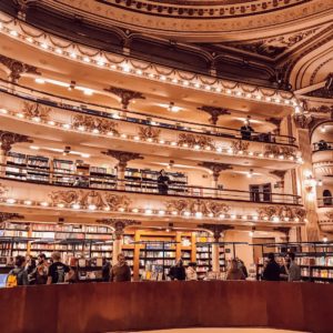 L’ancien théâtre argentin a été revisité en magnifique librairie. Derrière les rideaux, sur l’ancienne scène, vous pouvez prendre le thé. Le lieu dispose de plusieurs étages, et est gardé par de nombreux vigiles. Victime de son succès et de sa beauté, l’endroit est surtout prisé des touristes qui viennent prendre des photos, plutôt que des acheteurs de livres.