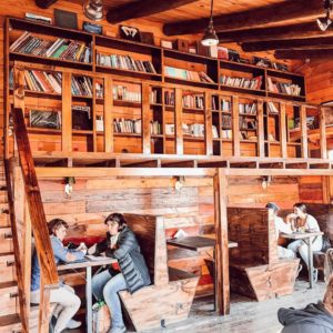 Sur la photo, un magnifique petit chalet de montagne à El Calafate (Argentine) transformé en café.